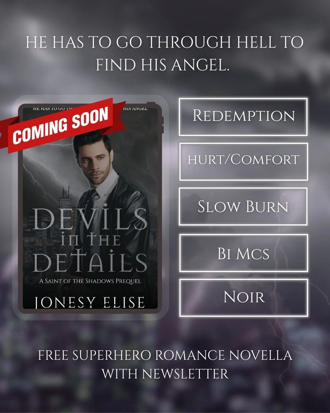 Jonesy Elise is a bisexual elder millennial who writes romance inspired by the Saturday morning shows she watched growing up. Her stories are real genre mashers—sci-fi fantasy with gothic vibes, spicy romance, dystopian monster. Safe to say, she loves composing paranormal/sci-fi/romance mashups.